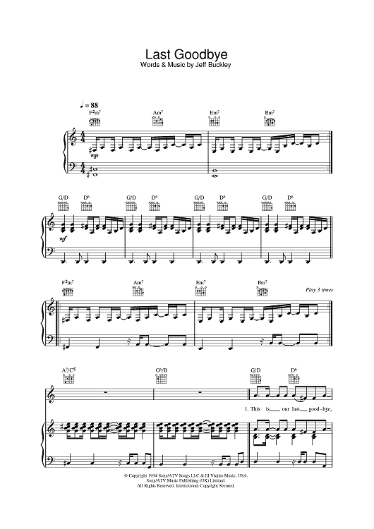 "Last Goodbye" Sheet Music by Jeff Buckley