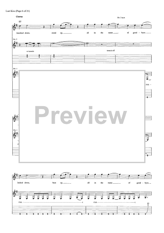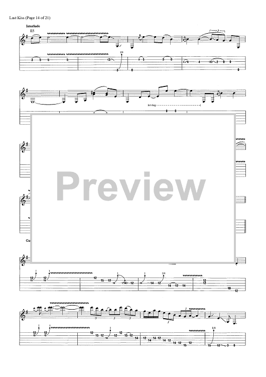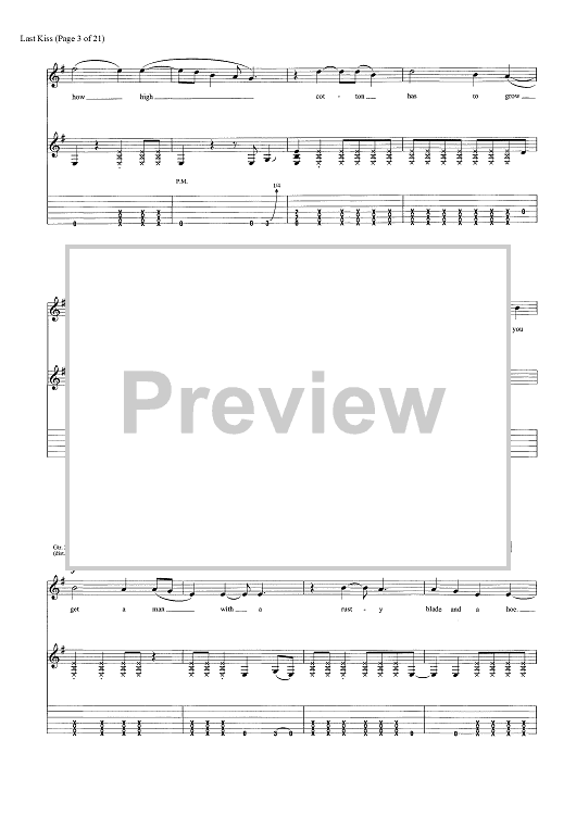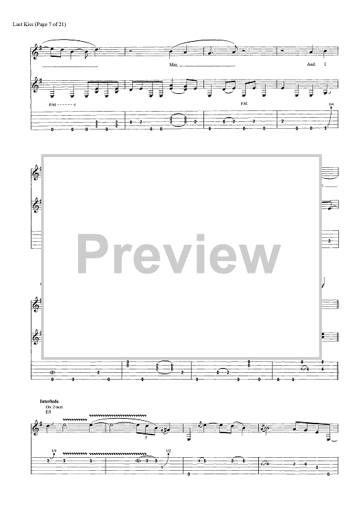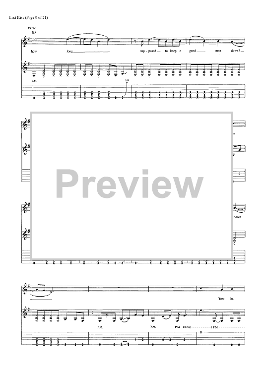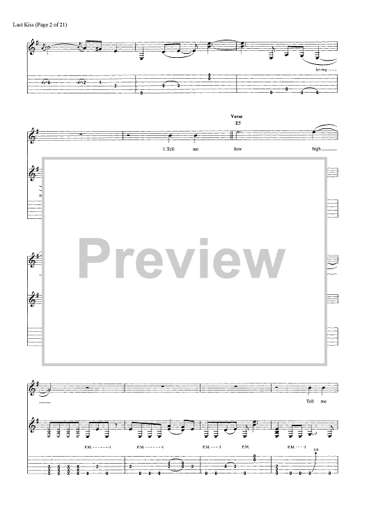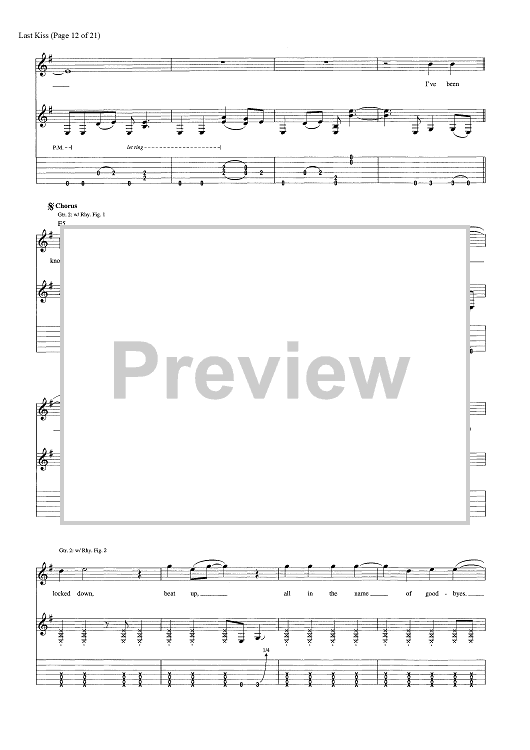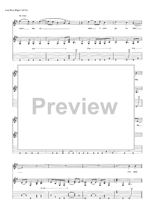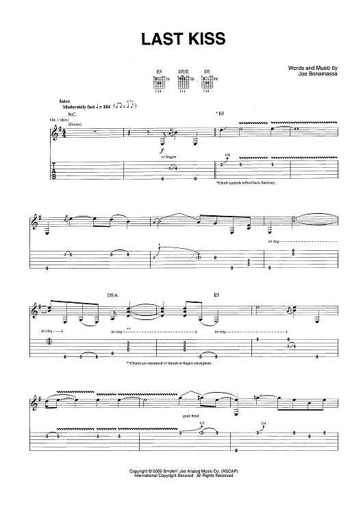 Digital Sheet Music for Last Kiss by Joe Bonamassa scored for Guitar Tab/Vocal/Chords; id:465513
