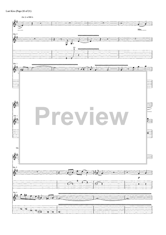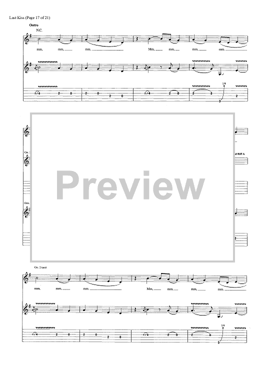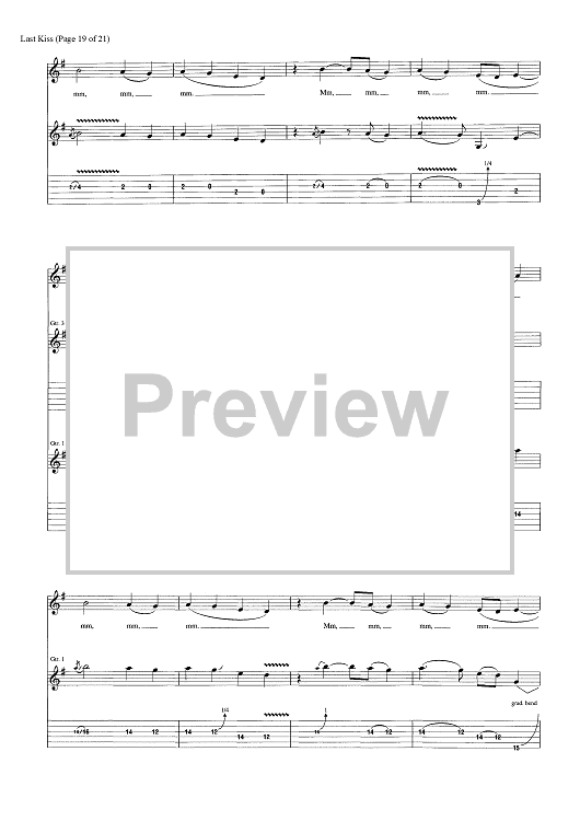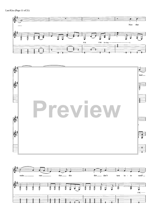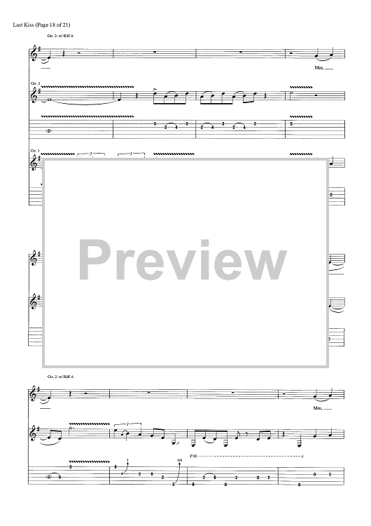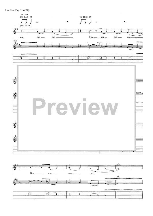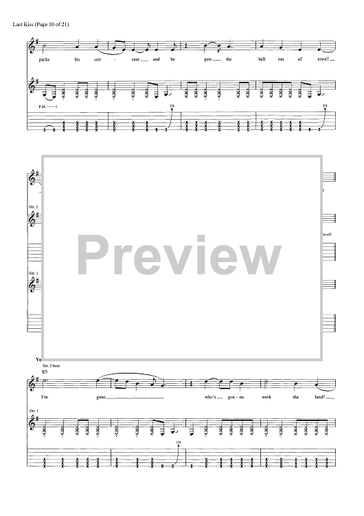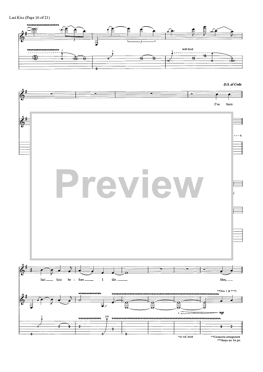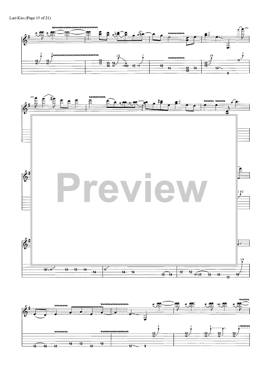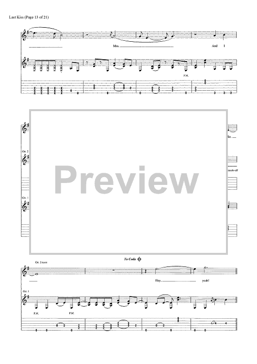 Digital Sheet Music for Last Kiss by Joe Bonamassa scored for Guitar Tab/Vocal/Chords; id:465513