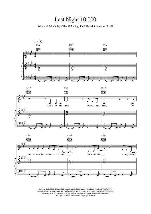 Digital Sheet Music for Last Night 10,000 by M People scored for Piano/Vocal/Chords; id:376652