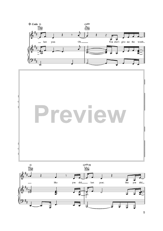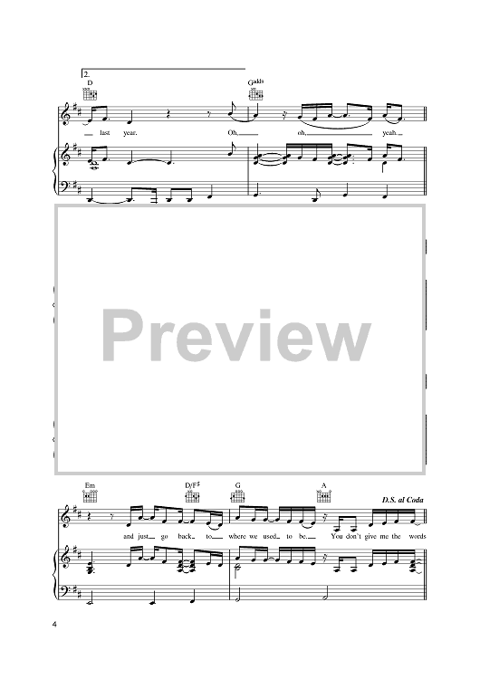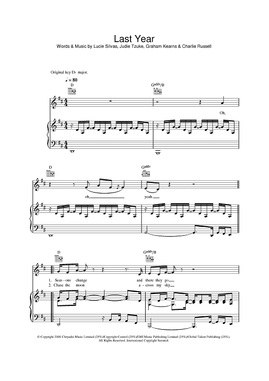 Digital Sheet Music for Last Year by Graham Kearns, Charlie Russell, Lucie Silvas, Judie Tzuke scored for Piano/Vocal/Chords; id:397010