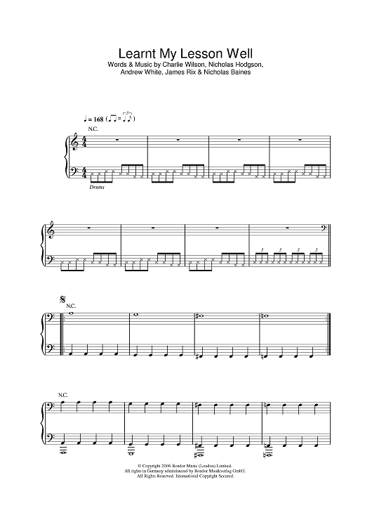 Digital Sheet Music for Learnt My Lesson Well by Nick Baines, Nick Hodgson, Kaiser Chiefs, Simon Rix, Andrew White, Charlie Wilson scored for Piano/Vocal/Chords; id:397029
