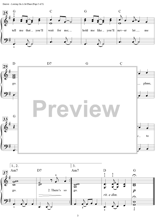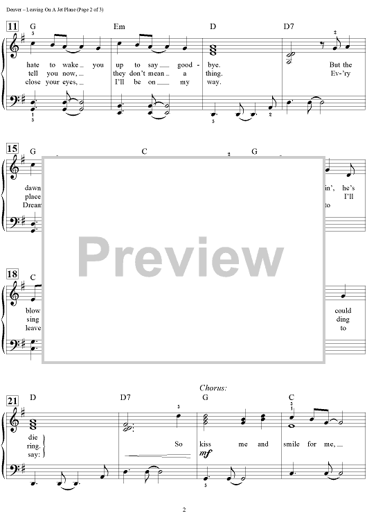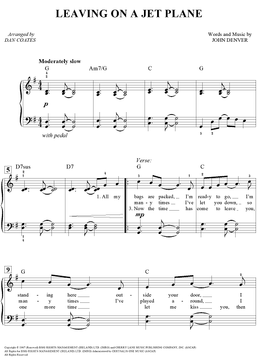 "Leaving on a Jet Plane" Sheet Music by John Denver