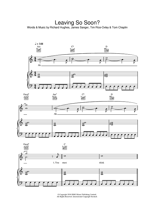 Digital Sheet Music for Leaving So Soon? by Keane, Tim Rice-Oxley, Tom Chaplin, Richard David Hughes, James Sanger scored for Piano/Vocal/Chords; id:391177