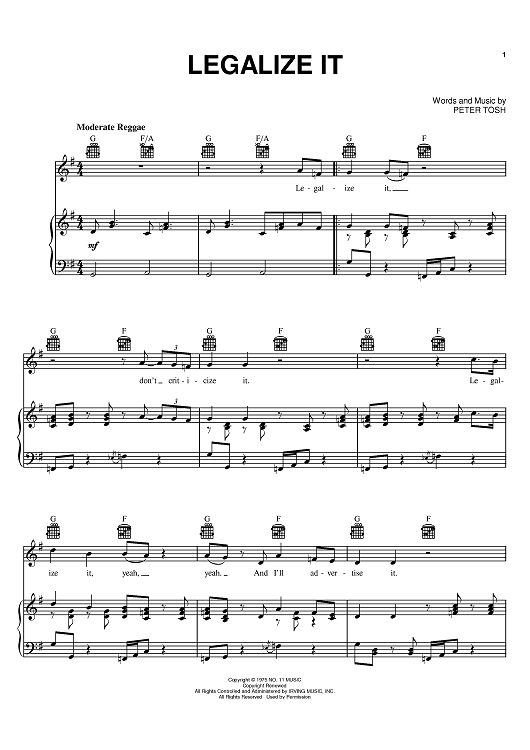 Digital Sheet Music for Legalize It by Peter Tosh scored for Piano/Vocal/Chords; id:382252