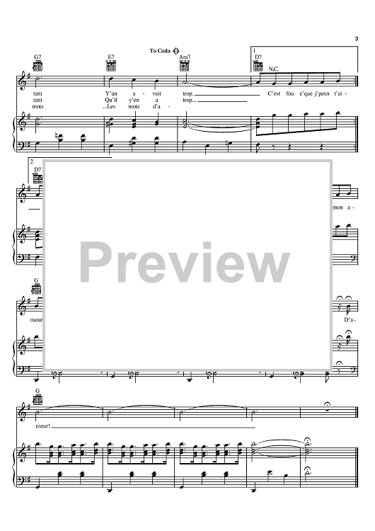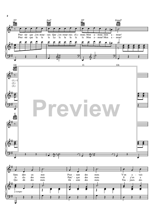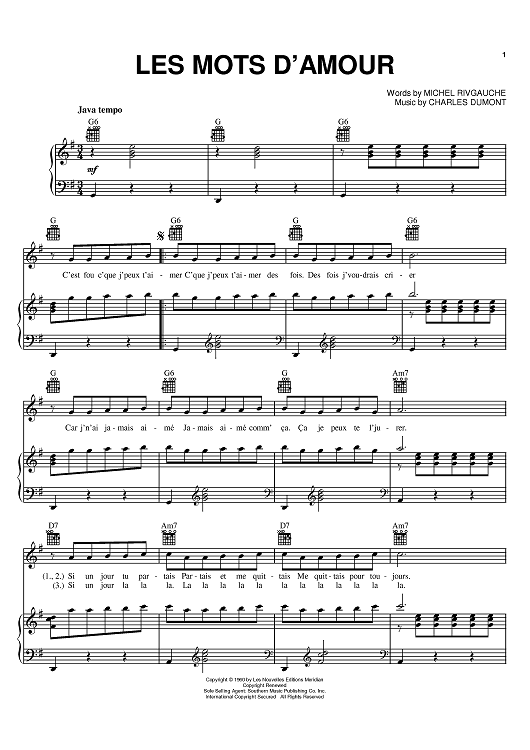 Digital Sheet Music for Les Mots D'amour by Edith Piaf, Charles Dumont, Michel Rivgauche scored for Piano/Vocal/Chords; id:395183
