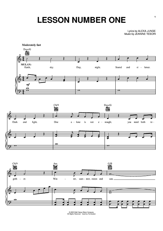 Digital Sheet Music for Lesson Number One by Jeanine Tesori, Alexa Junge scored for Piano/Vocal/Chords; id:383372