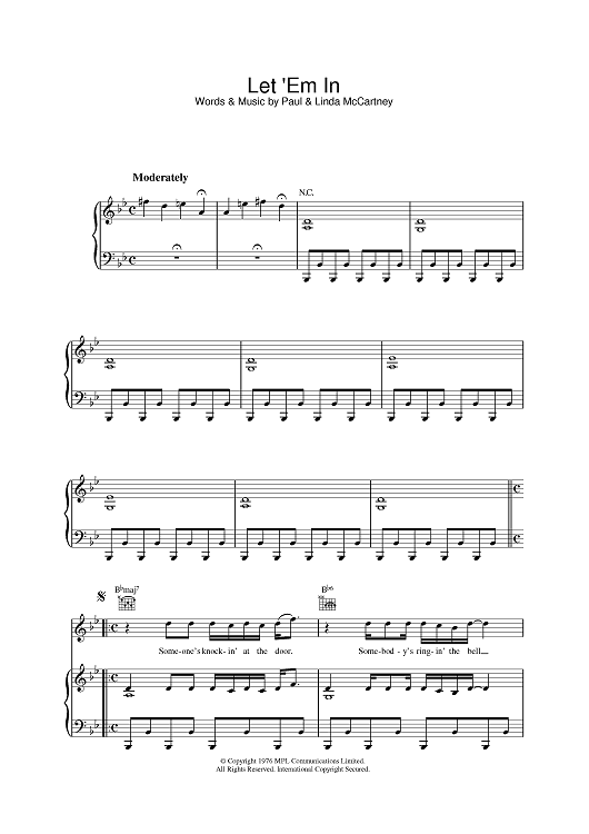 Digital Sheet Music for Let 'Em In by Paul McCartney, Linda McCartney scored for Piano/Vocal/Chords; id:390562