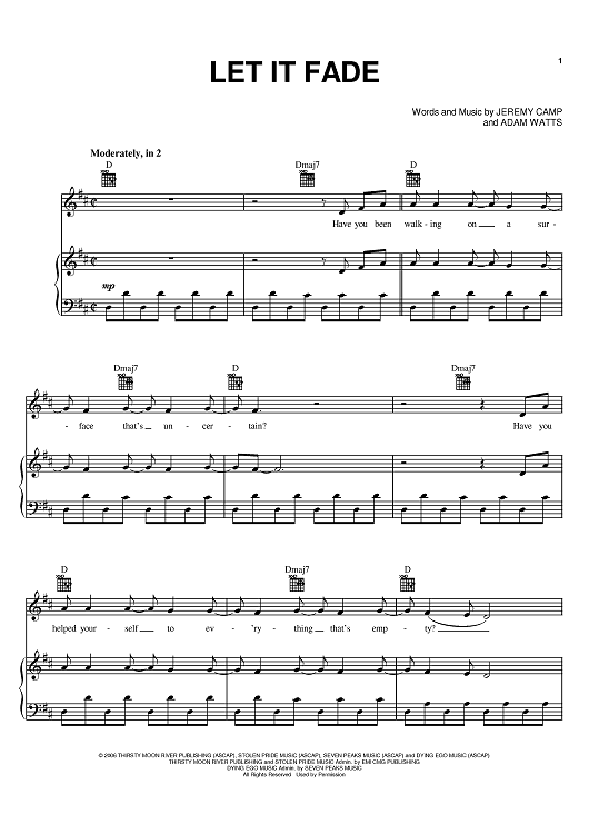 Digital Sheet Music for Let It Fade by Jeremy Camp, Adam Watts scored for Piano/Vocal/Chords; id:394378