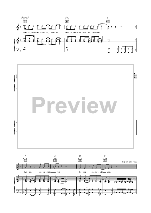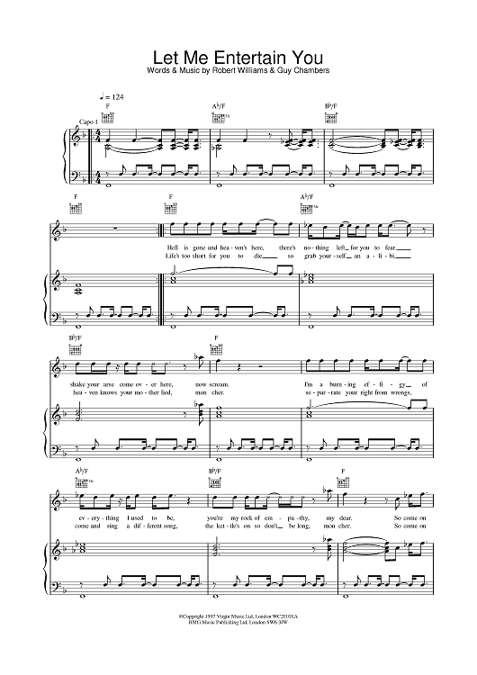 Digital Sheet Music for Let Me Entertain You by Robbie Williams scored for Piano/Vocal/Chords; id:376605