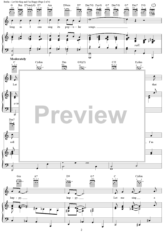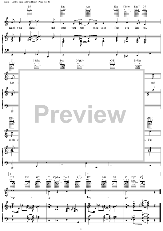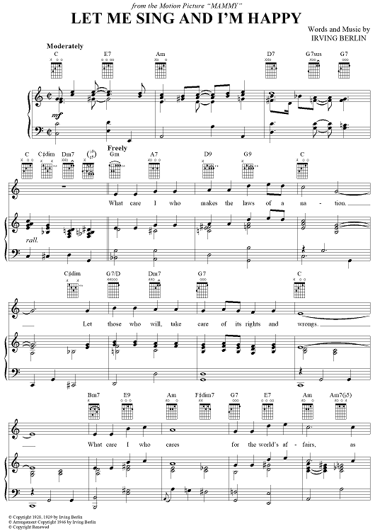 Digital Sheet Music for Let Me Sing and I'm Happy by Irving Berlin scored for Piano/Vocal/Chords; id:367151