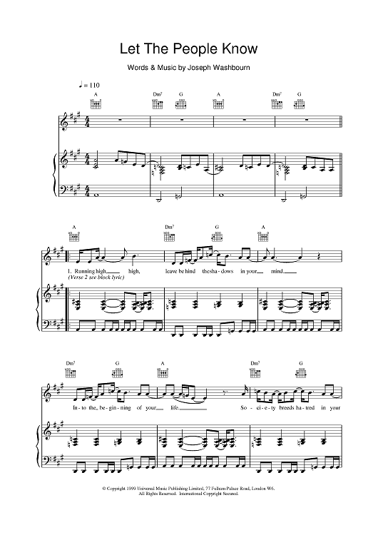 Digital Sheet Music for Let The People Know by Toploader scored for Piano/Vocal/Chords; id:377132