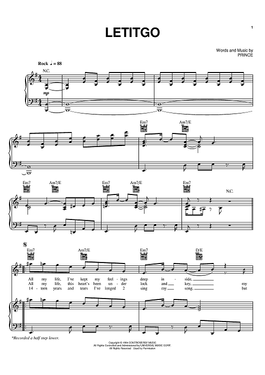 Digital Sheet Music for Letitgo by Prince scored for Piano/Vocal/Chords; id:398347