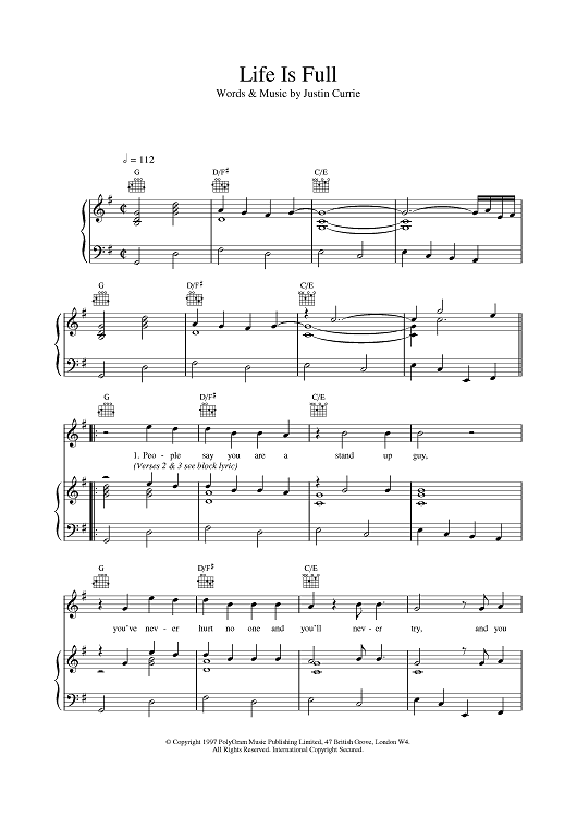 Digital Sheet Music for Life Is Full by Del Amitri scored for Piano/Vocal/Chords; id:376509