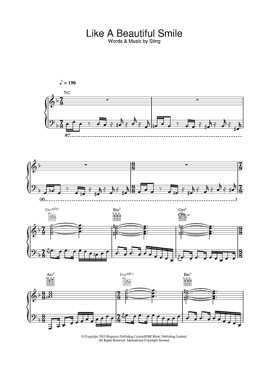 Digital Sheet Music for Like A Beautiful Smile by Sting scored for Piano/Vocal/Chords; id:378191