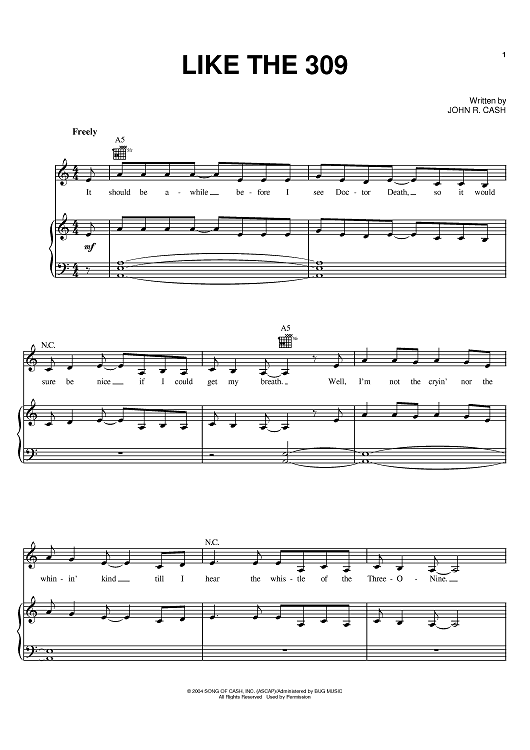 Digital Sheet Music for Like The 309 by Johnny Cash scored for Piano/Vocal/Chords; id:394181