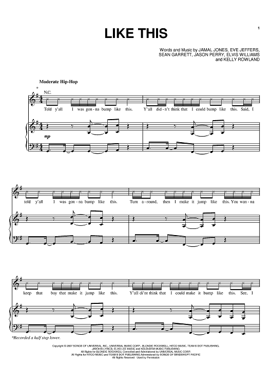 Digital Sheet Music for Like This by Kelly Rowland, Jason Perry, Eve, Sean Garrett, Eve Jeffers, Jamal Jones, Kelly featuring Eve Rowland, Elvis Williams scored for Piano/Vocal/Chords; id:398089
