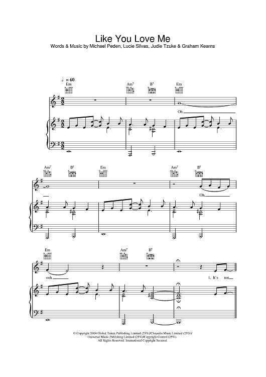 Digital Sheet Music for Like You Love Me by Michael Peden, Lucie Silvas, Judie Tzuke scored for Piano/Vocal/Chords; id:381669