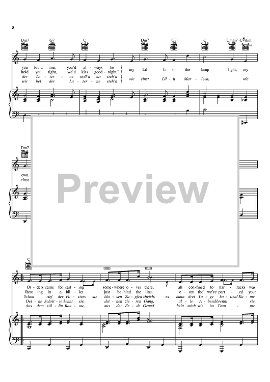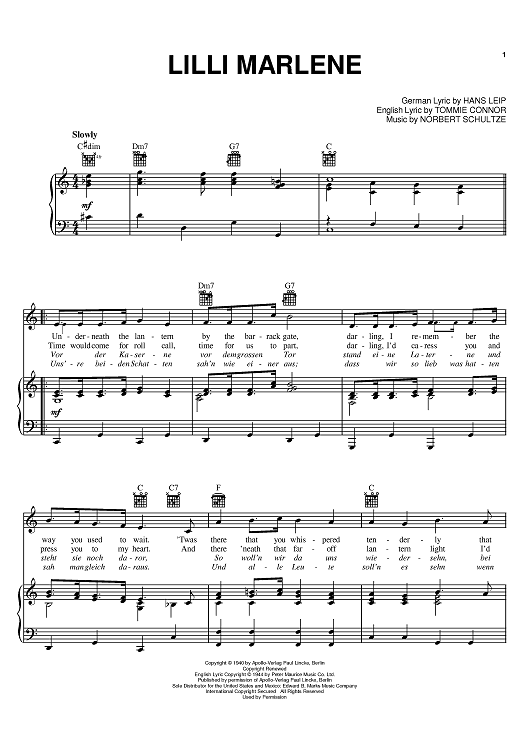 Digital Sheet Music for Lilli Marlene by Perry Como, Tommie Connor, Marlene Dietrich, Hans Leip, Norbert Schultze, Jimmy Philips scored for Piano/Vocal/Chords; id:382150