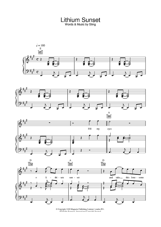 Digital Sheet Music for Lithium Sunset by Sting scored for Piano/Vocal/Chords; id:376139