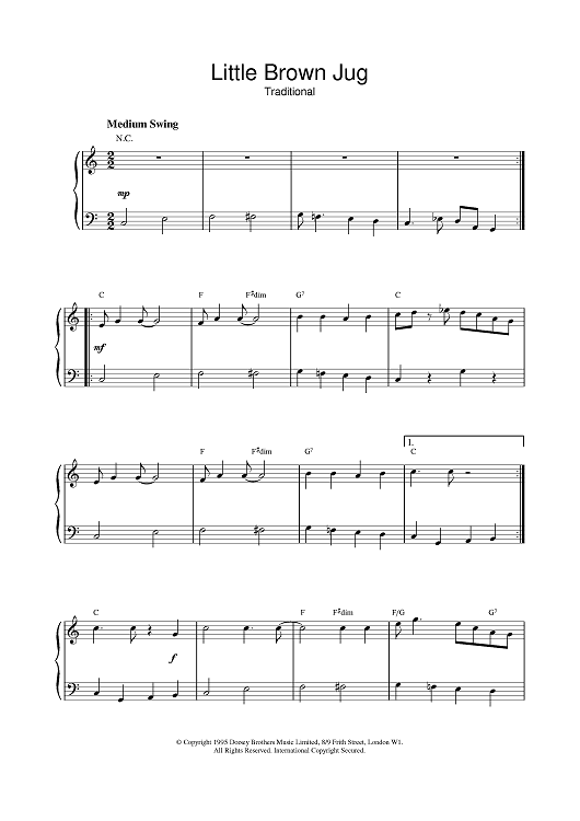 Digital Sheet Music for Little Brown Jug by Duke Ellington scored for Piano/Vocal/Chords; id:375768