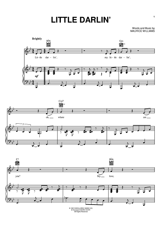 Digital Sheet Music for Little Darlin' by Maurice Williams, The Diamonds scored for Piano/Vocal/Chords; id:382305
