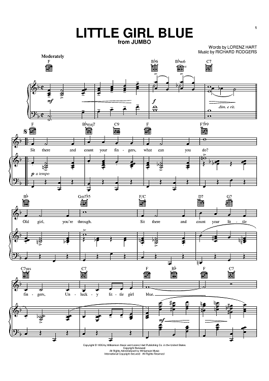 Digital Sheet Music for Little Girl Blue by Richard Rodgers, Lorenz Hart scored for Piano/Vocal/Chords; id:386002