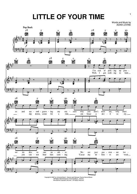 Digital Sheet Music for Little Of Your Time by Adam Levine, Maroon 5 scored for Piano/Vocal/Chords; id:401081