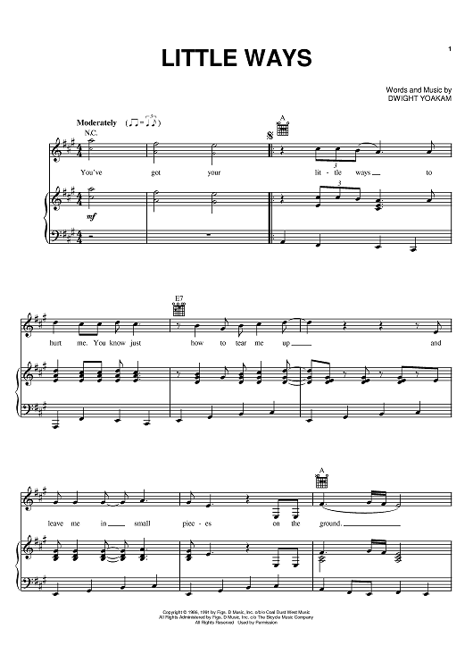 Digital Sheet Music for Little Ways by Dwight Yoakam scored for Piano/Vocal/Chords; id:402409