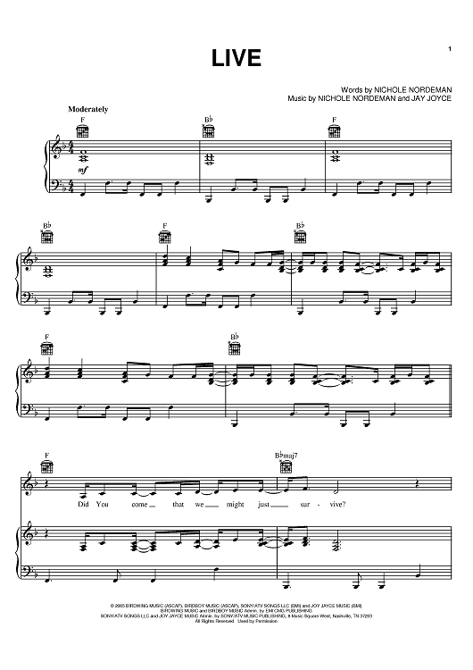 Digital Sheet Music for Live by Nichole Nordeman, Jay Joyce scored for Piano/Vocal/Chords; id:384480