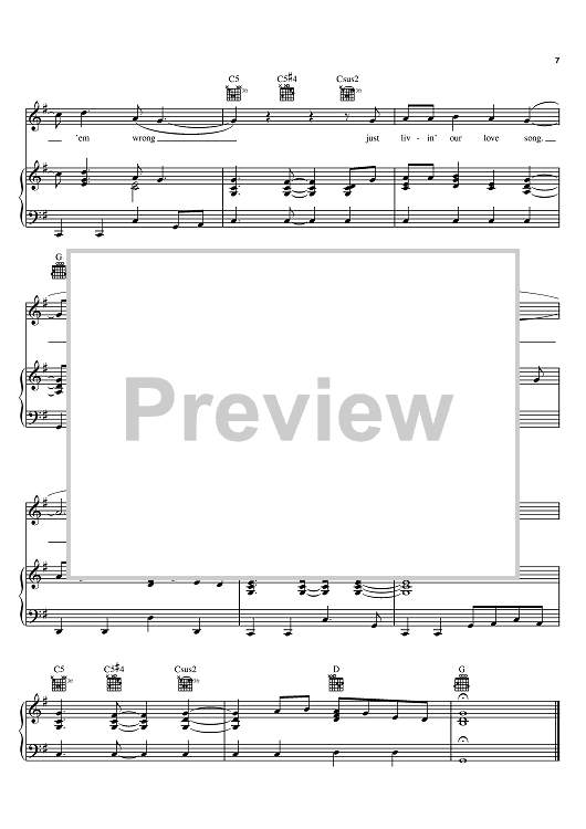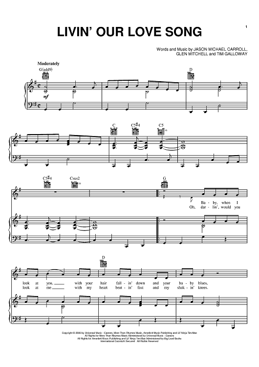 Digital Sheet Music for Livin' Our Love Song by Jason Michael Carroll, Glen Mitchell, Tim Galloway scored for Piano/Vocal/Chords; id:401457
