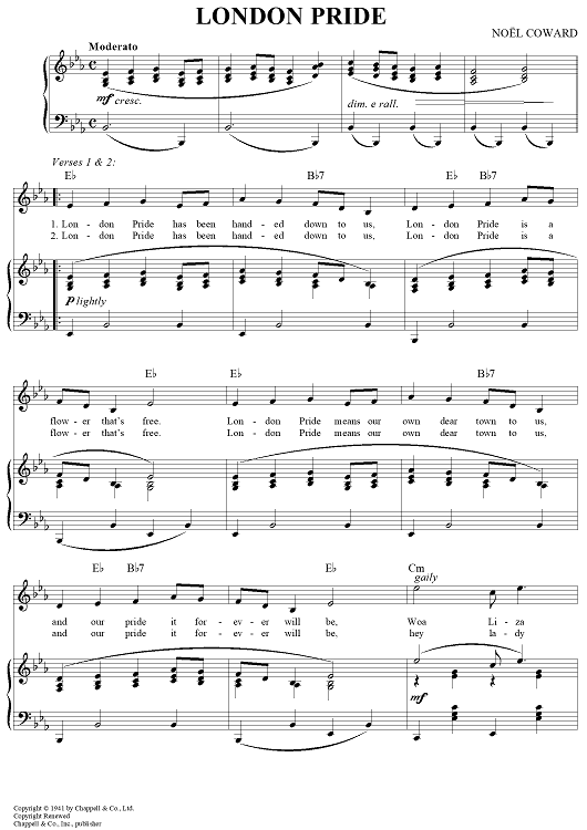 Digital Sheet Music for London Pride by Noel Coward scored for Piano/Vocal/Chords; id:356589
