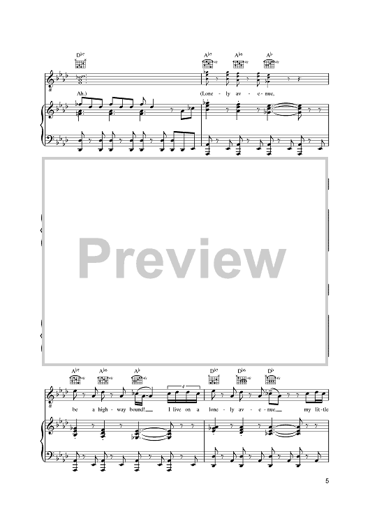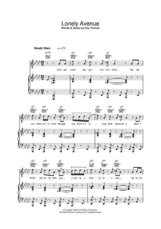 Digital Sheet Music for Lonely Avenue by Ray Charles, Doc Pomus scored for Piano/Vocal/Chords; id:385885