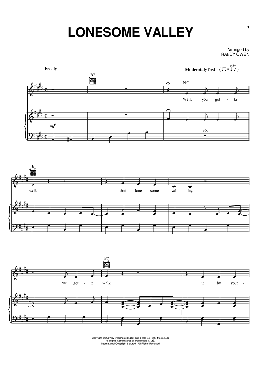 Digital Sheet Music for Lonesome Valley by Randy Owen, Alabama scored for Piano/Vocal/Chords; id:401523