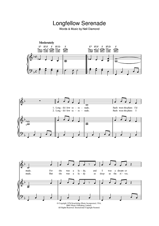 Digital Sheet Music for Longfellow Serenade by Neil Diamond scored for Piano/Vocal/Chords; id:394101
