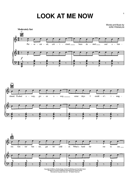Digital Sheet Music for Look At Me Now by Kirk Franklin scored for Piano/Vocal/Chords; id:397096