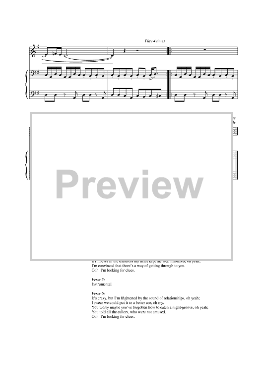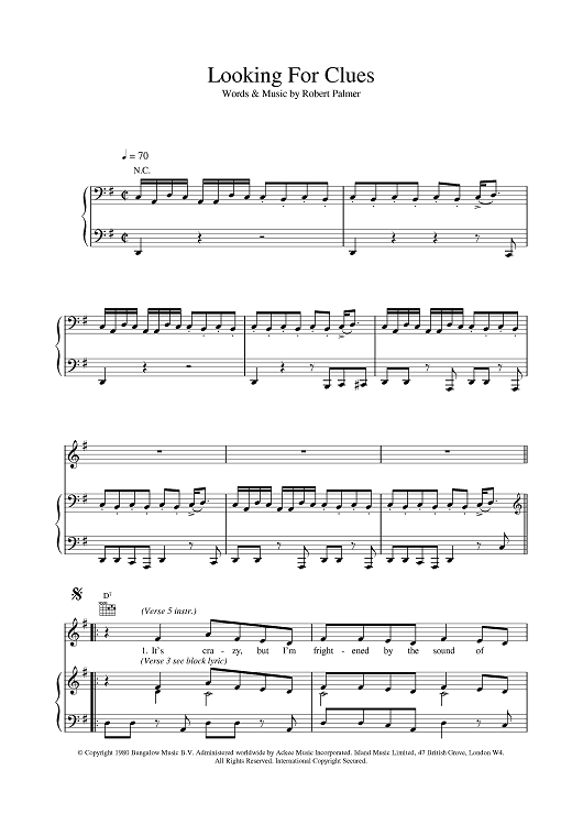 Digital Sheet Music for Looking For Clues by Robert Palmer scored for Piano/Vocal/Chords; id:375536