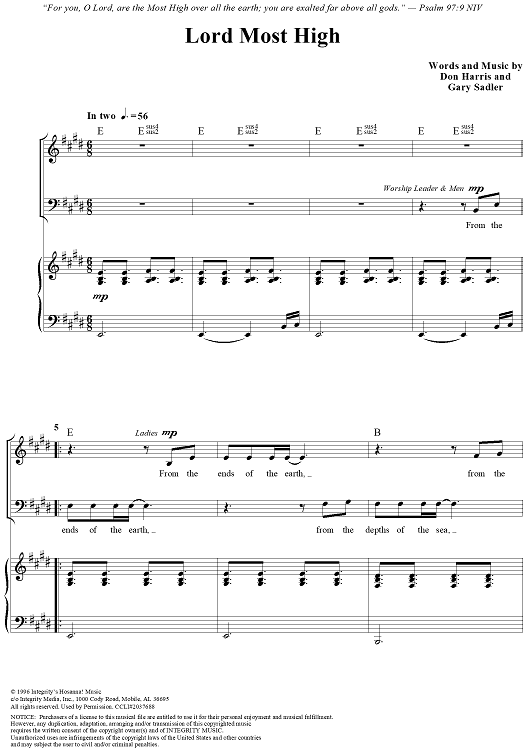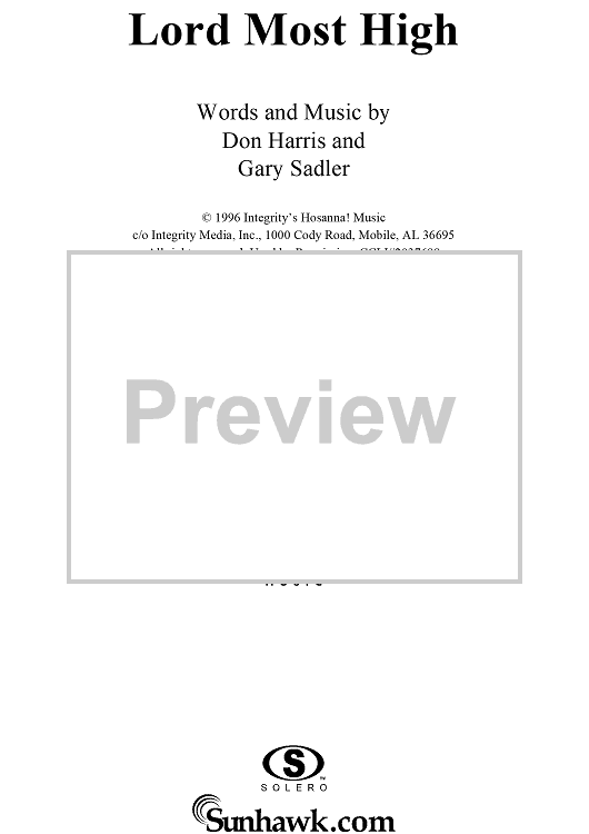 Digital Sheet Music for Lord Most High by Gary Sadler, Don Harris scored for Piano/Vocal/Chords; id:307724