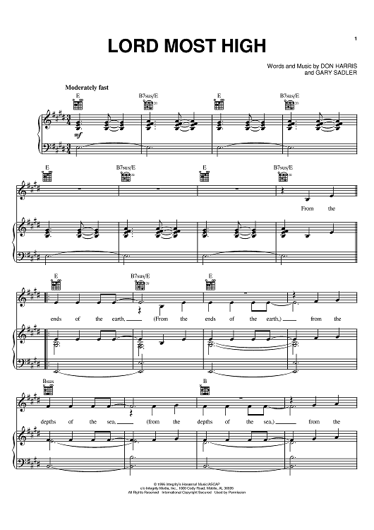 Digital Sheet Music for Lord Most High by Gary Sadler, Don Harris, The Martins scored for Piano/Vocal/Chords; id:374040