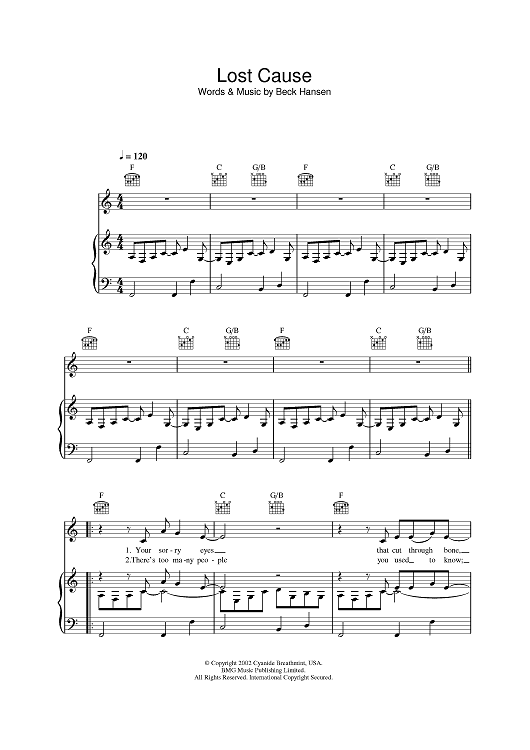Digital Sheet Music for Lost Cause by Beck scored for Piano/Vocal/Chords; id:388775