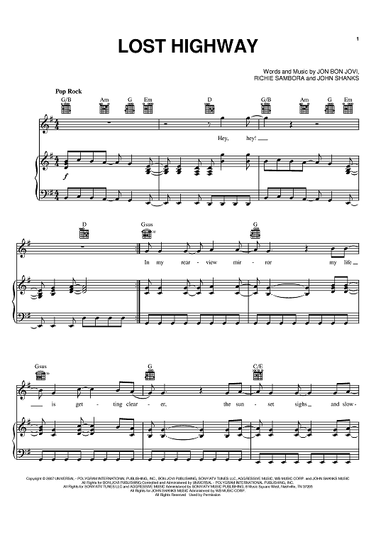 Digital Sheet Music for Lost Highway by Bon Jovi, Richie Sambora, John Shanks, Jon Bon Jovi scored for Piano/Vocal/Chords; id:401749