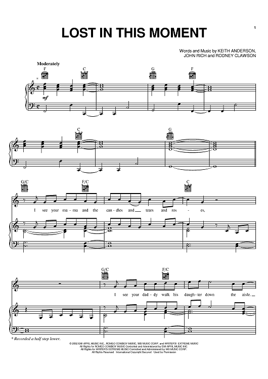 Digital Sheet Music for Lost In This Moment by Bob Andy, John Rich, Big & Rich, Rodney Clawson scored for Piano/Vocal/Chords; id:397098