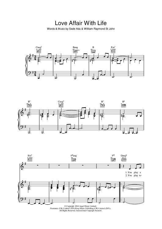 Digital Sheet Music for Love Affair With Life by Sade Adu, Ray St. John, Sade scored for Piano/Vocal/Chords; id:402305