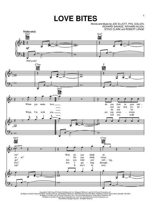 Digital Sheet Music for Love Bites by Steve Clark, Def Leppard, Robert Lange, Joe Elliott, Phil Collen, Rick Savage scored for Piano/Vocal/Chords; id:381849