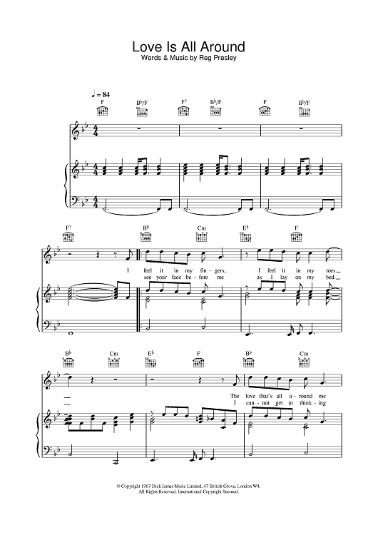 Digital Sheet Music for Love Is All Around by Wet Wet Wet scored for Piano/Vocal/Chords; id:379015