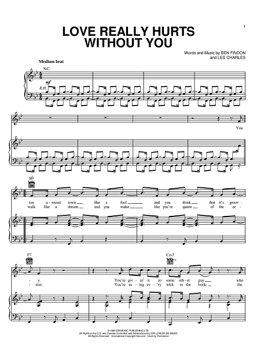Digital Sheet Music for Love Really Hurts Without You by Billy Ocean, Ben Findon scored for Piano/Vocal/Chords; id:388737