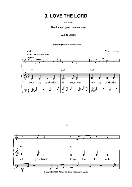 Digital Sheet Music for Love The Lord by Alison Hedger scored for Piano/Vocal/Chords; id:391564