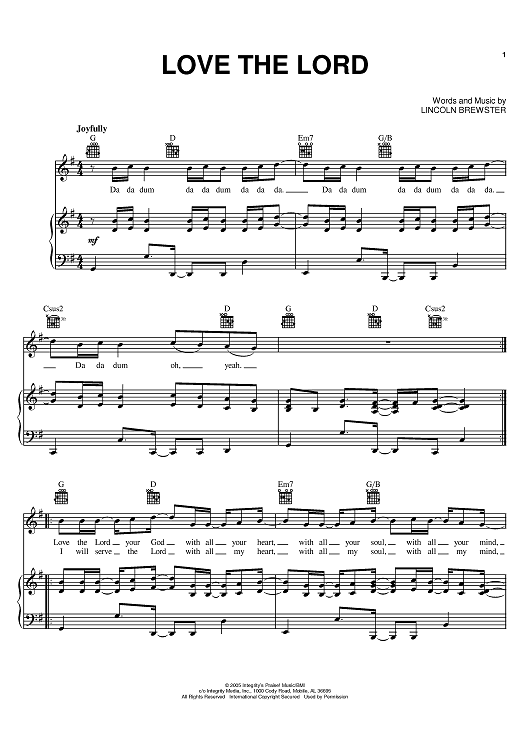 "Love The Lord" Sheet Music by Lincoln Brewster
