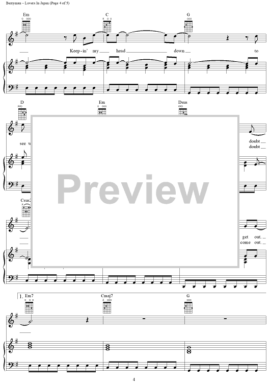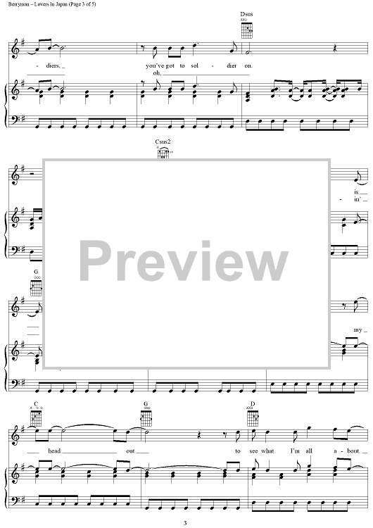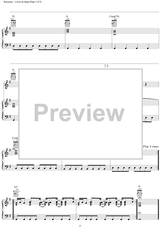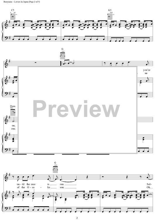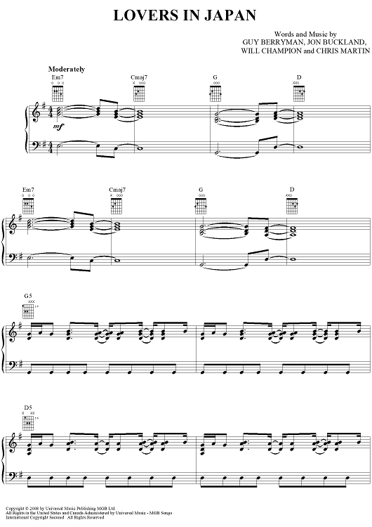 Digital Sheet Music for Lovers in Japan by Chris Martin, Coldplay, Jonny Buckland, Guy Berryman scored for Piano/Vocal/Chords; id:404855