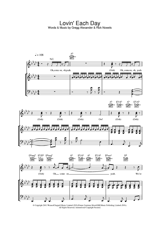 Digital Sheet Music for Lovin' Each Day by Rick Nowels, Gregg Alexander, Ronan Keating scored for Piano/Vocal/Chords; id:380865